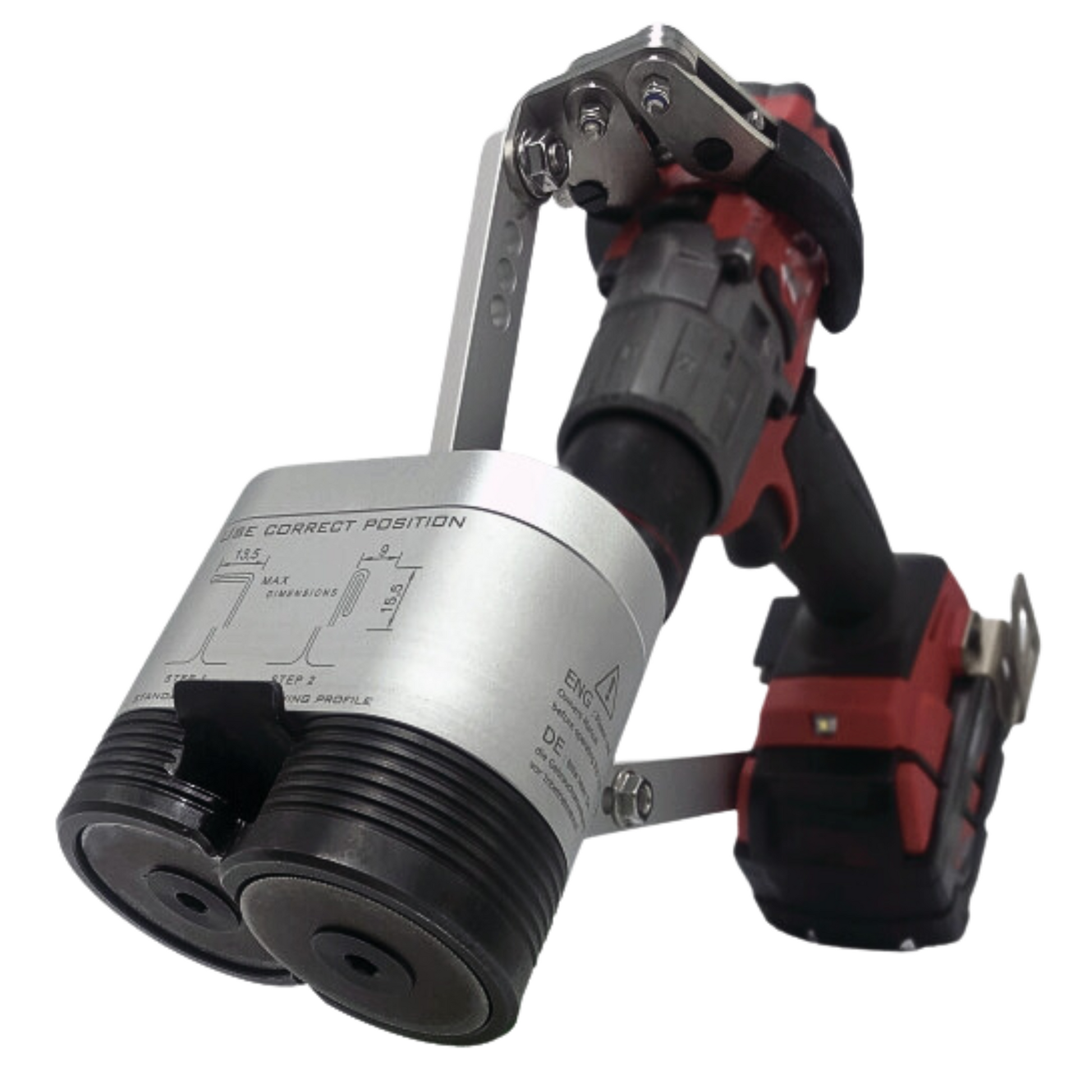 The Falz Cutter makes fast work of cutting off old standing seam roof seams for demolition or replacement. Powered by your cordless power drill, the Falz Cutter works by removing the entire folded portion of the standing seam panel. Due to its unique design, the Falz Cutter can be placed anywhere along the length of standing seam making it possible to remove short sections if needed. The Falz Cutter works on all 1" & 1-1/2" double-lock panel profiles that have a folded seam of 9/16" (13.5mm) or less. It will not work with any panel that has a 5/8" or taller folded seam, and will not work on a single-lock profile. Powered by your cordless (or corded) power drill. Drill is not included! Features: