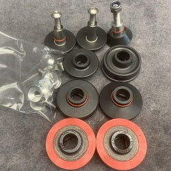 This set contains one (1) each all of the wheels listed below, including two (2) of the red Polyurethane Drive Rollers.