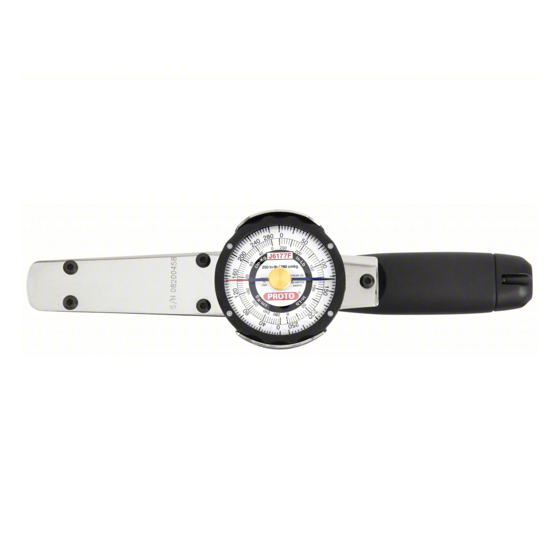 PROTO Dial Torque Wrench: 3/8 in Drive Size, 50 to 250 in-lb/56 to 280 cm-kg, 10 in Overall Lg