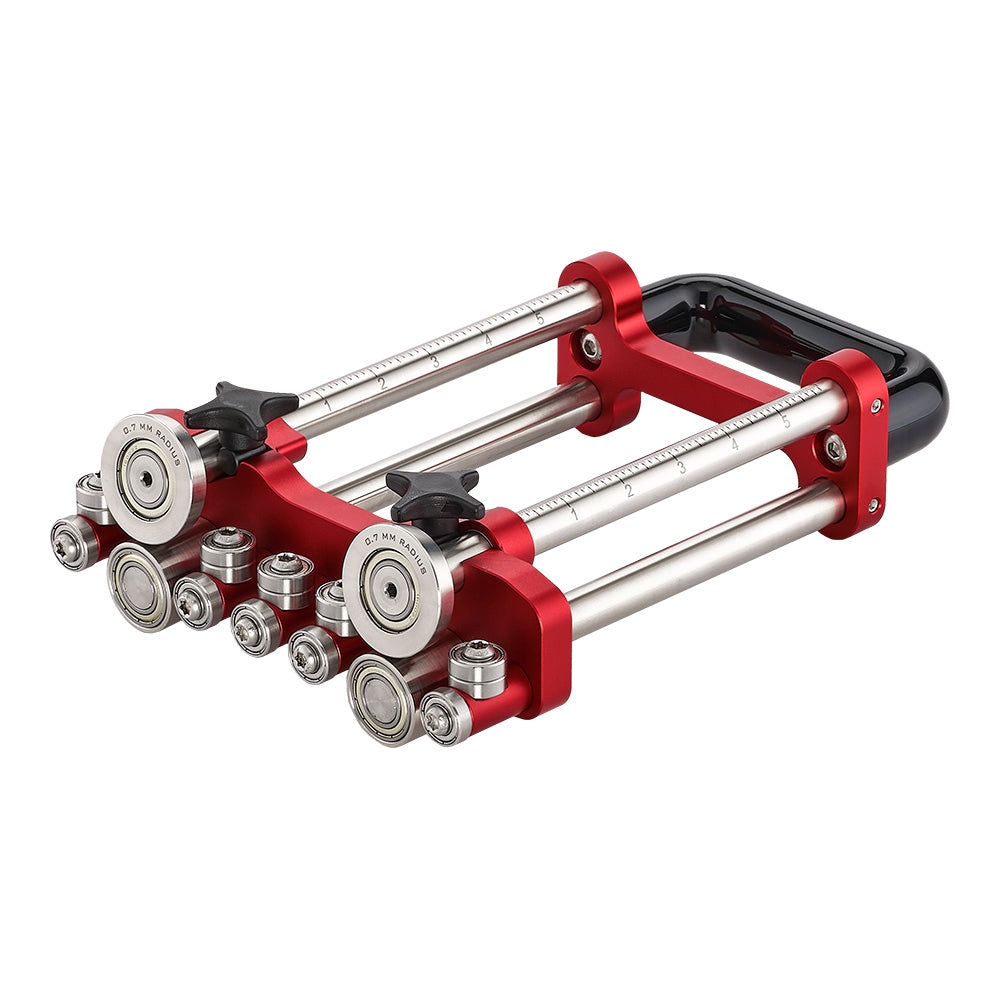 Adjustable roller spacing accommodates multiple materials and thicknesses, and the exclusive angled roller design helps protect finished surfaces during 90° bends. The tapered roller profile allows use on mechanical lock standing seam systems.