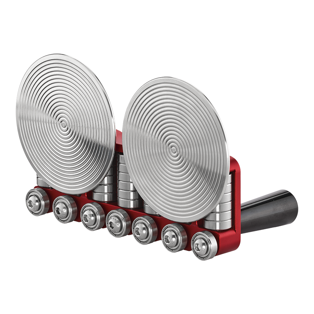 Seven sets of bearing guides glide smoothly along the material, following the initial bend and ensuring controlled, uniform forming across a wide range of metals. The removable discs allow for quick disassembly and mid-panel tool removal when necessary.
