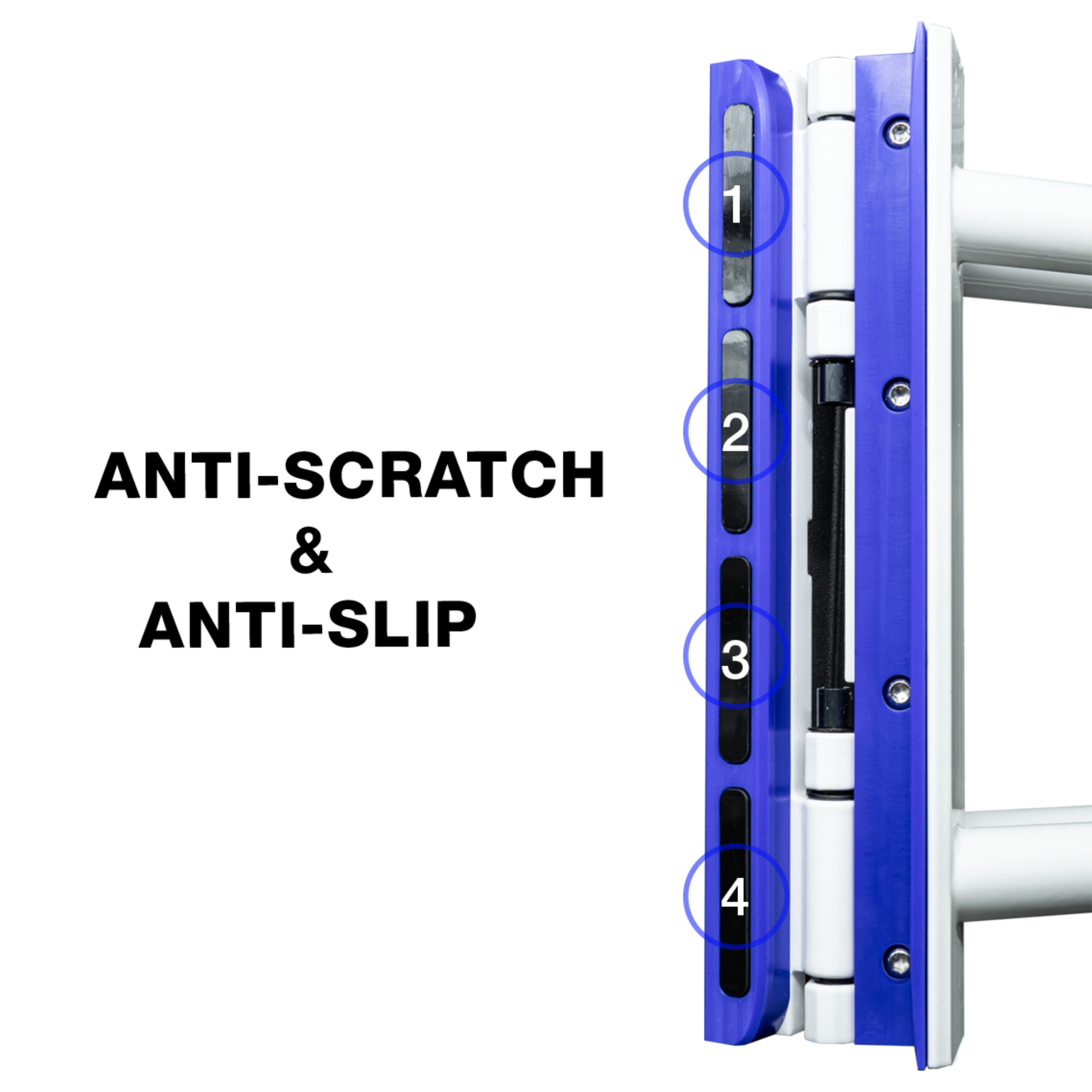 Plastic inserts protect the roof panel from damage as well as grip the panel during use to prevent slippage. -