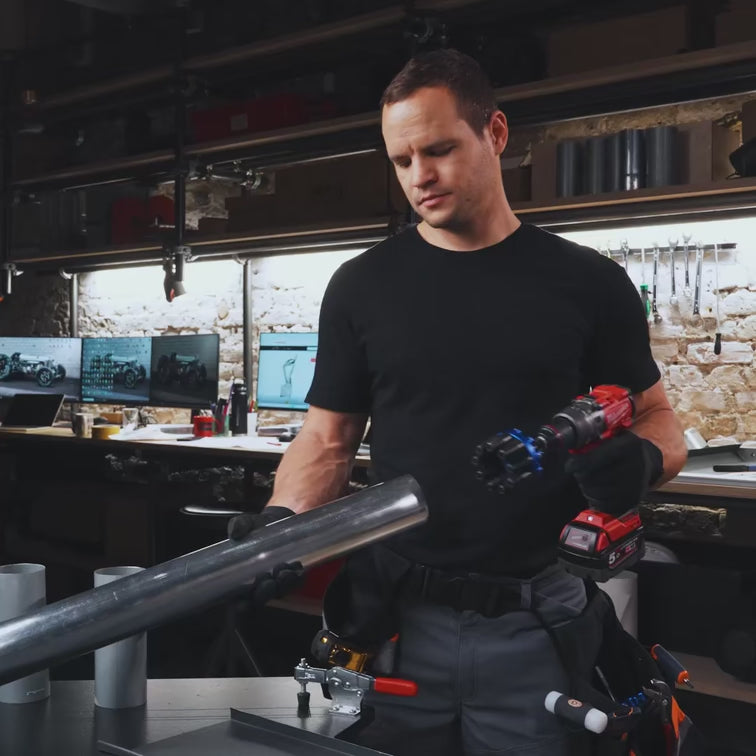 Important: Drill should be set in "drill mode" only, at speed 1, and turning at approximately 400-500rpm. Faster turning speeds can damage the pipe.