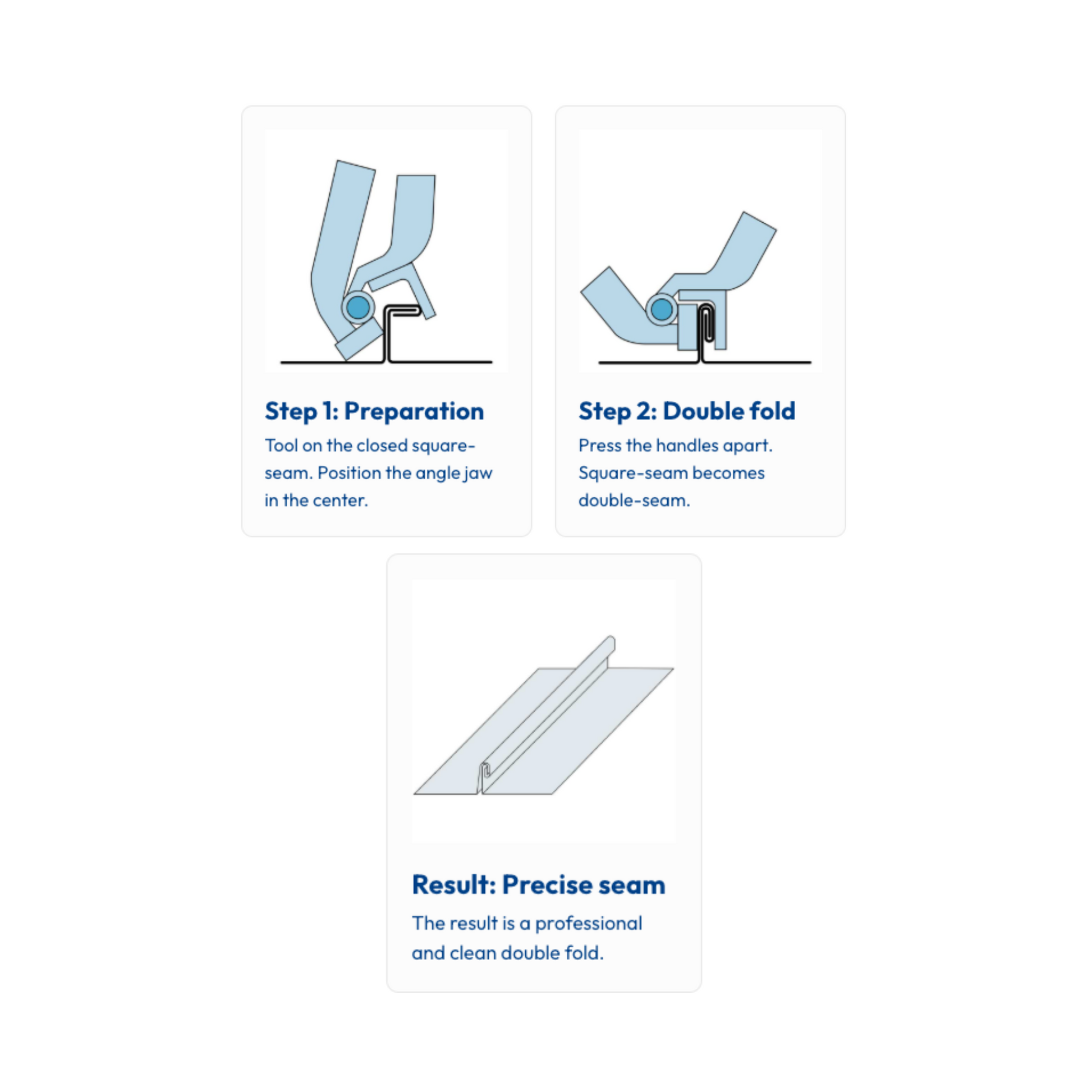 Your hands never have to leave the tool when closing the seam and are also in a comfortable bending position. This results in maximum speed and efficiency when on the roof.