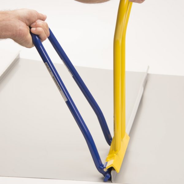 The Rau 117 WDF is a "second-stage" or "double-lock" tool designed to be used after the 90° lock has been made. This tool bends the panel around to a 180° lock anytime a double lock is required, for example, when using an electric seamer. This tool requires that the seam be first prepped with a single lock tool.