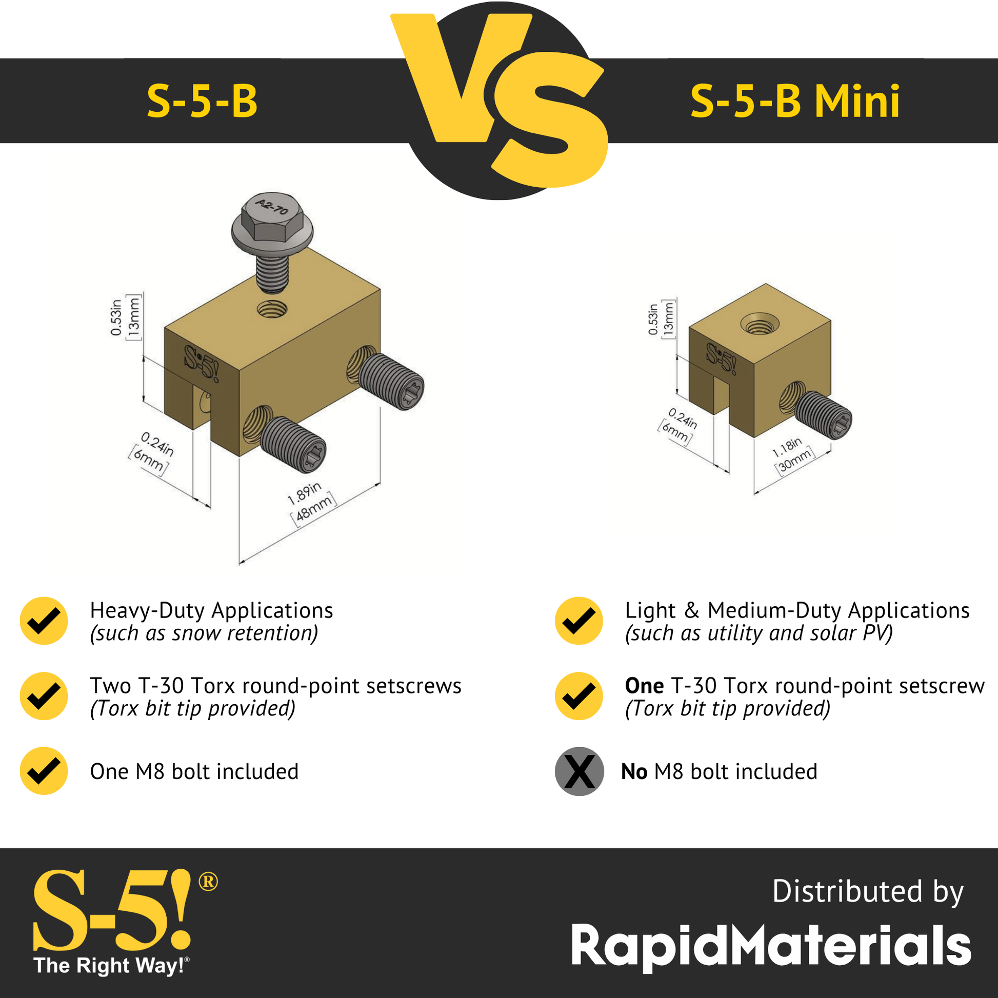 S-5!S-5! has led metal roof attachment since 1992, with zero-penetration clamps and brackets that preserve roof integrity and warranties.Shop more from S-5! →Specs