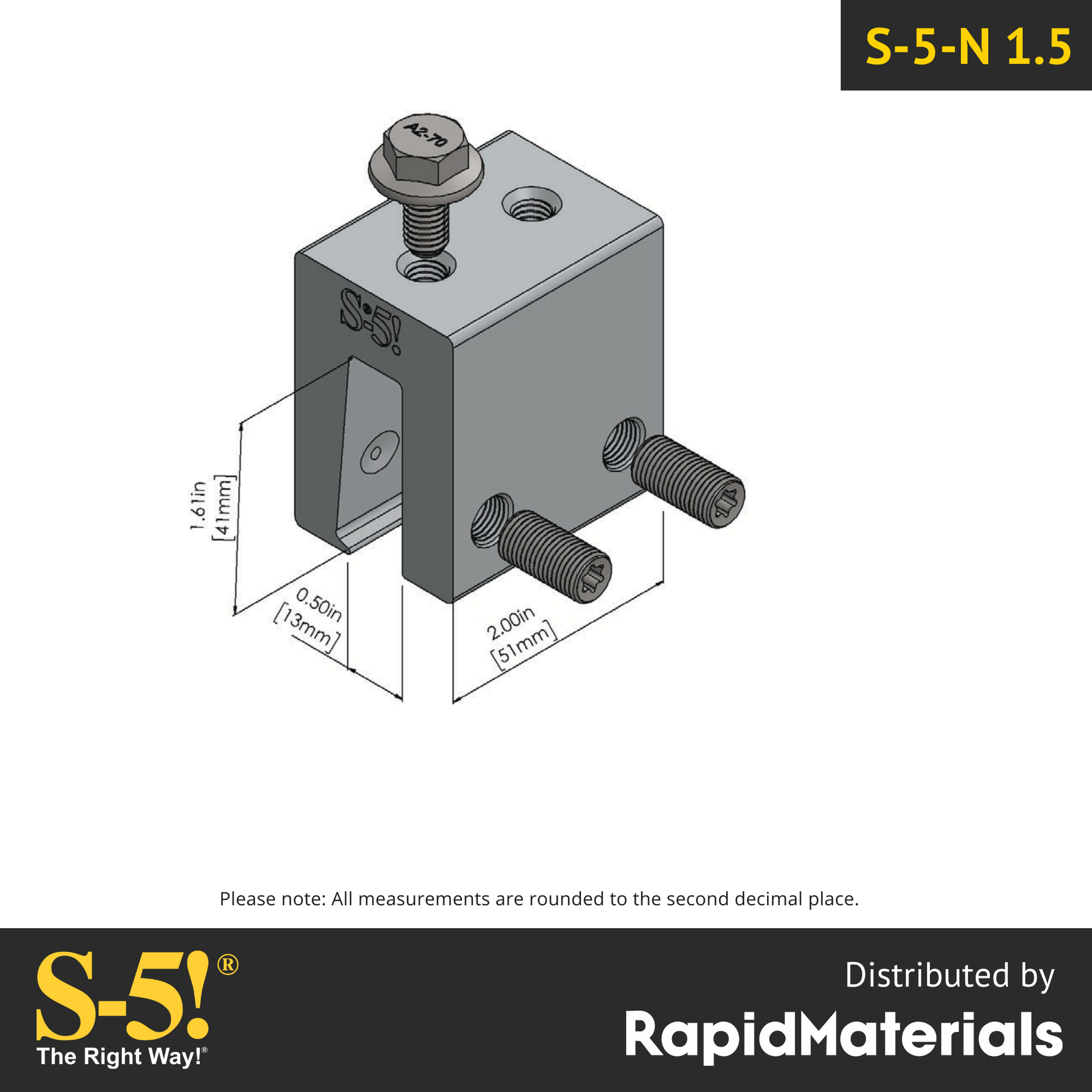 S-5!S-5! has led metal roof attachment since 1992, with zero-penetration clamps and brackets that preserve roof integrity and warranties.Shop more from S-5! →Specs