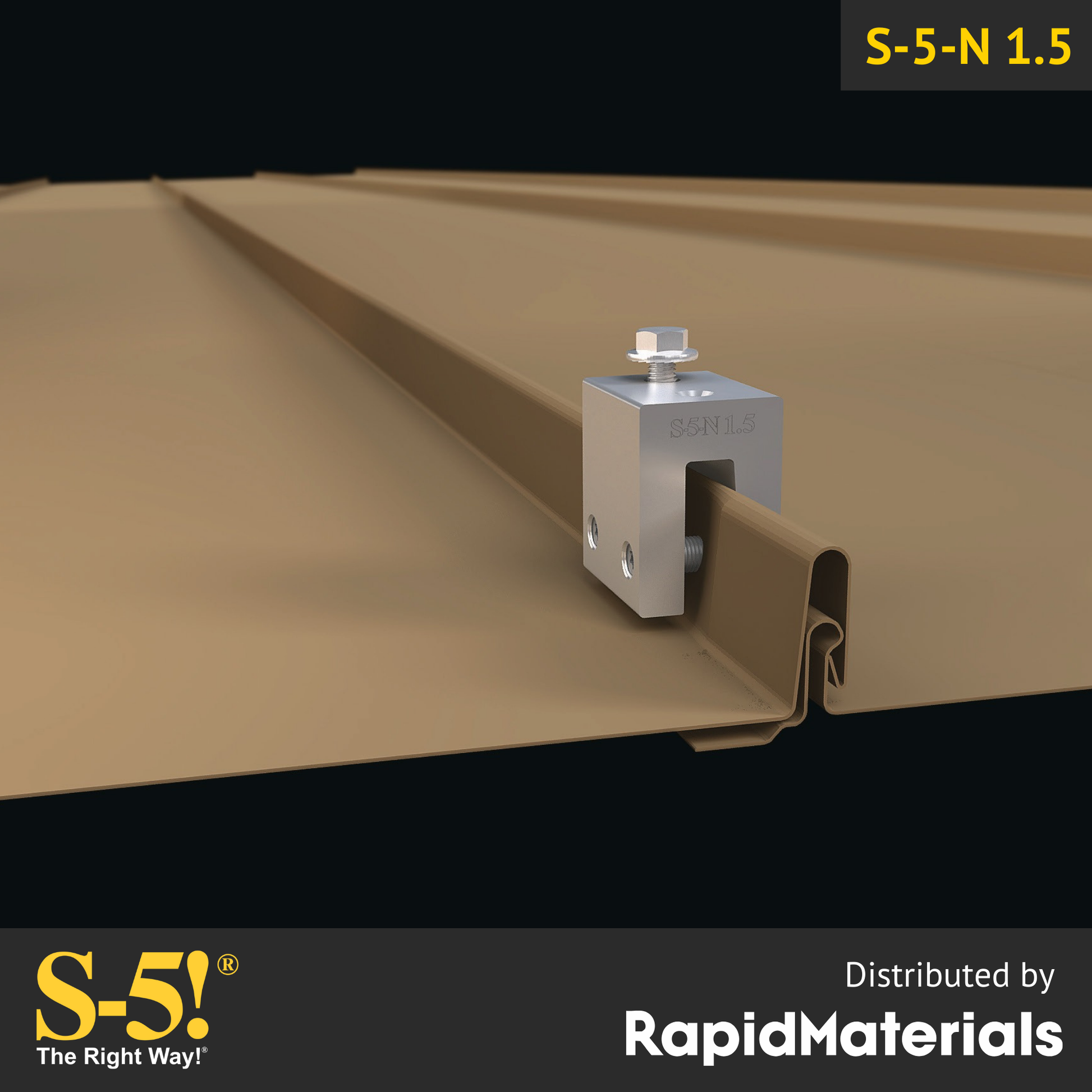 Introducing the S-5-N 1.5 clamp, specifically designed for non-penetrating attachment to standing seam metal roofs (SSMR) with 1.5″ (38 mm) nail strip profiles. This clamp is the ideal choice for various profiles such as Bridger Steel 1.5″ Tru Snap, Schlebach 1.5″ NailStrip, Sheet Metal Supply NS 1.5″, Sheffield Metals SMI 1.5″, and similar roofing types.