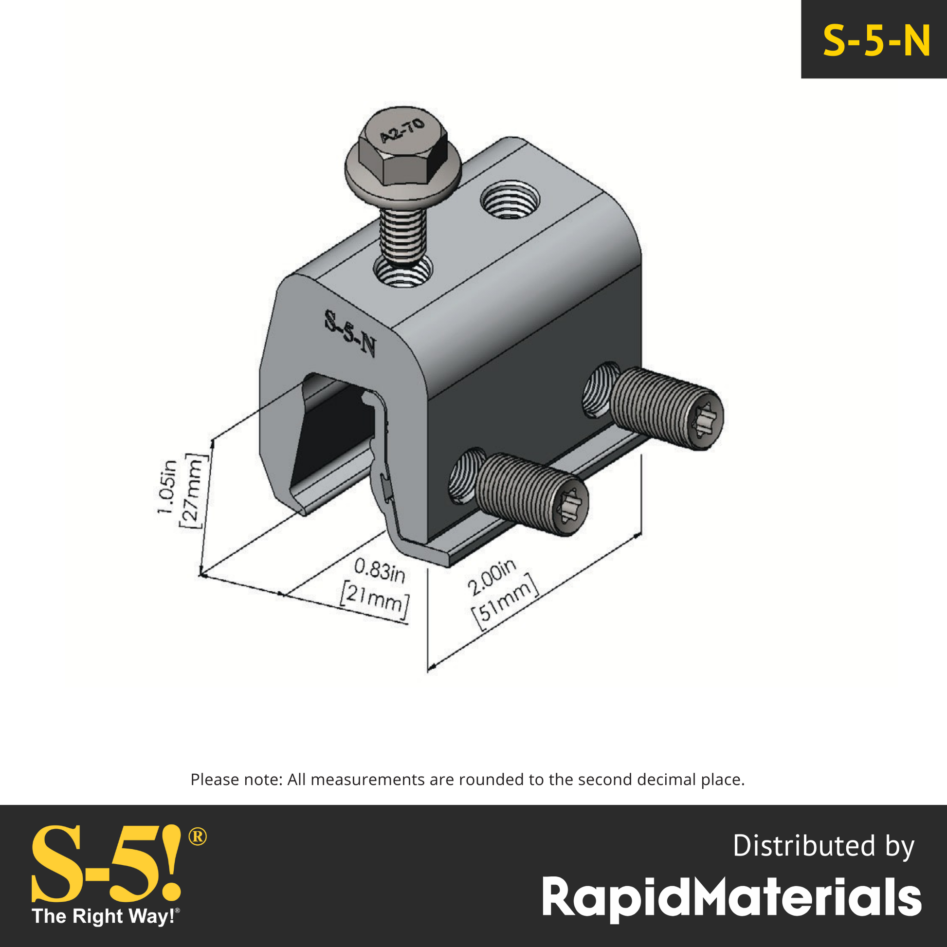 Perfectly suited for ColorGard snow retention and other heavy duty applications.For lighter duty applications like Solar Panel mounting, consider the S-5-N mini clamp.