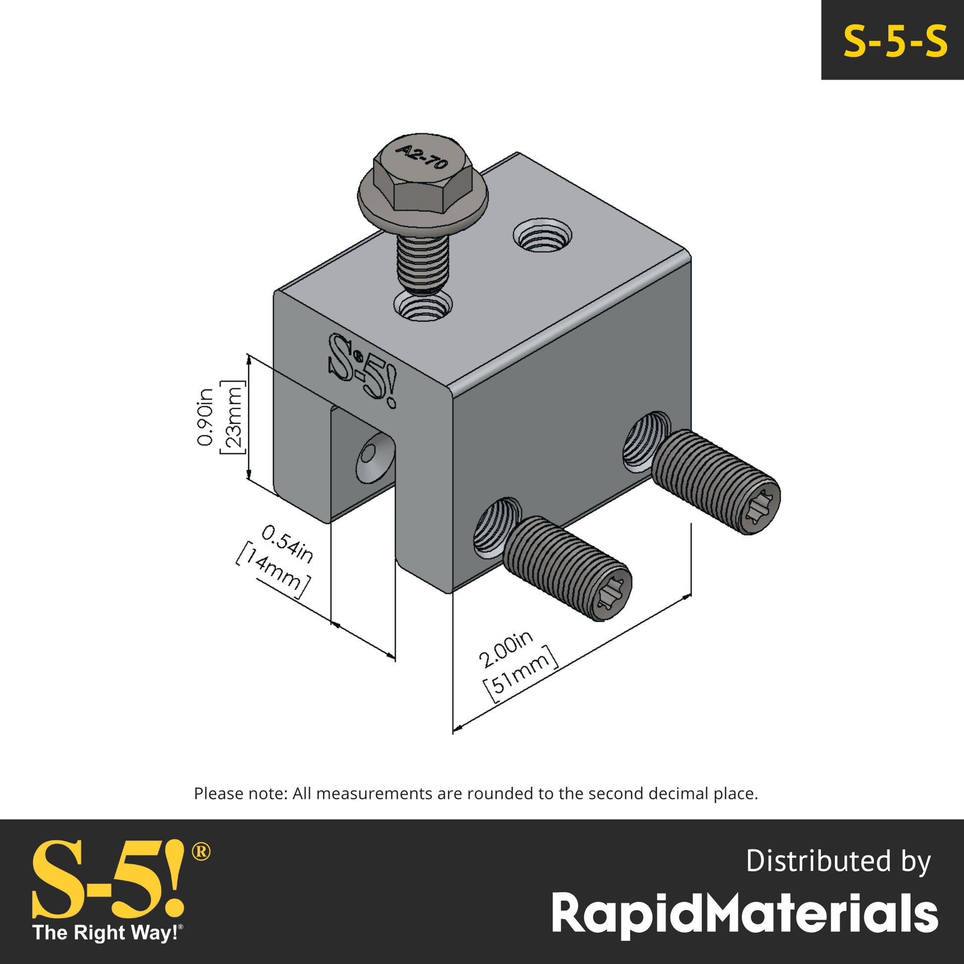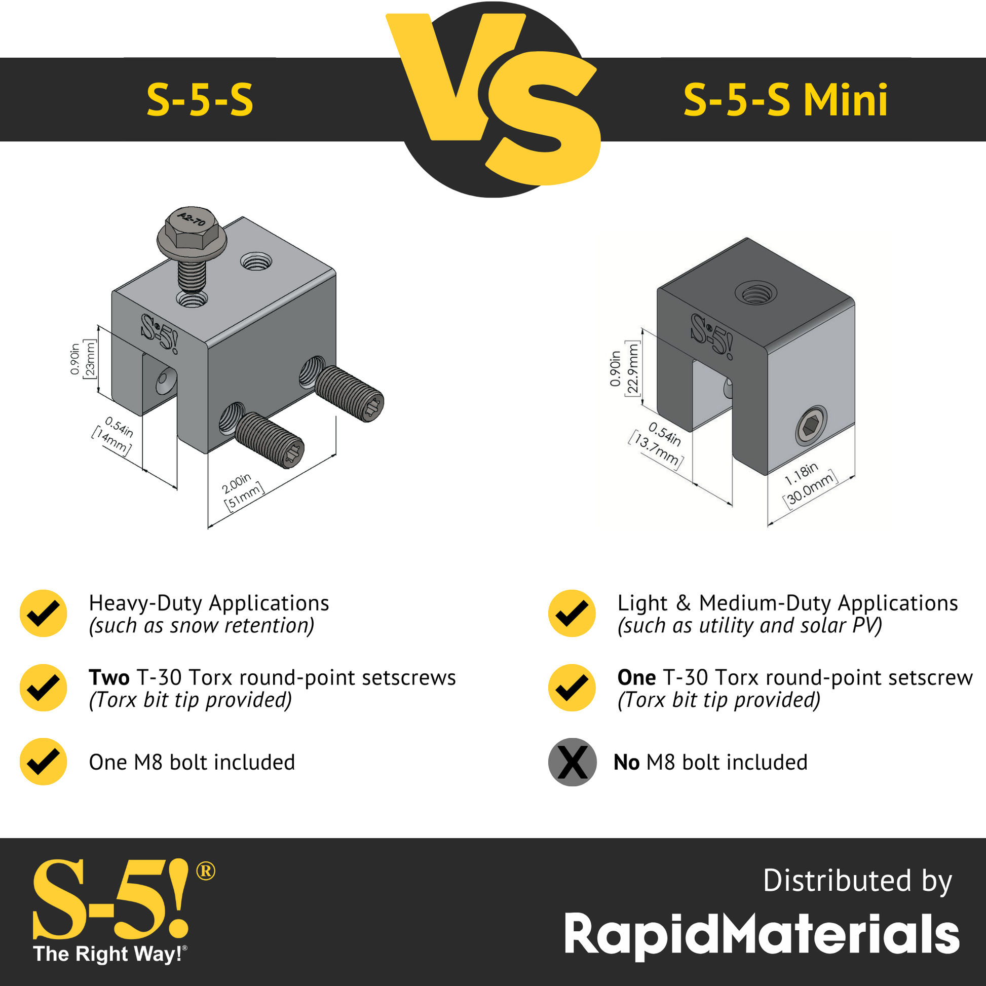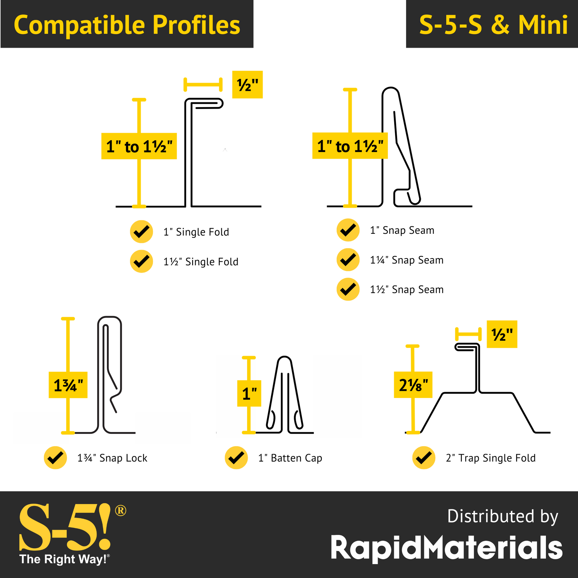 S-5!S-5! has led metal roof attachment since 1992, with zero-penetration clamps and brackets that preserve roof integrity and warranties.Shop more from S-5! →Specs