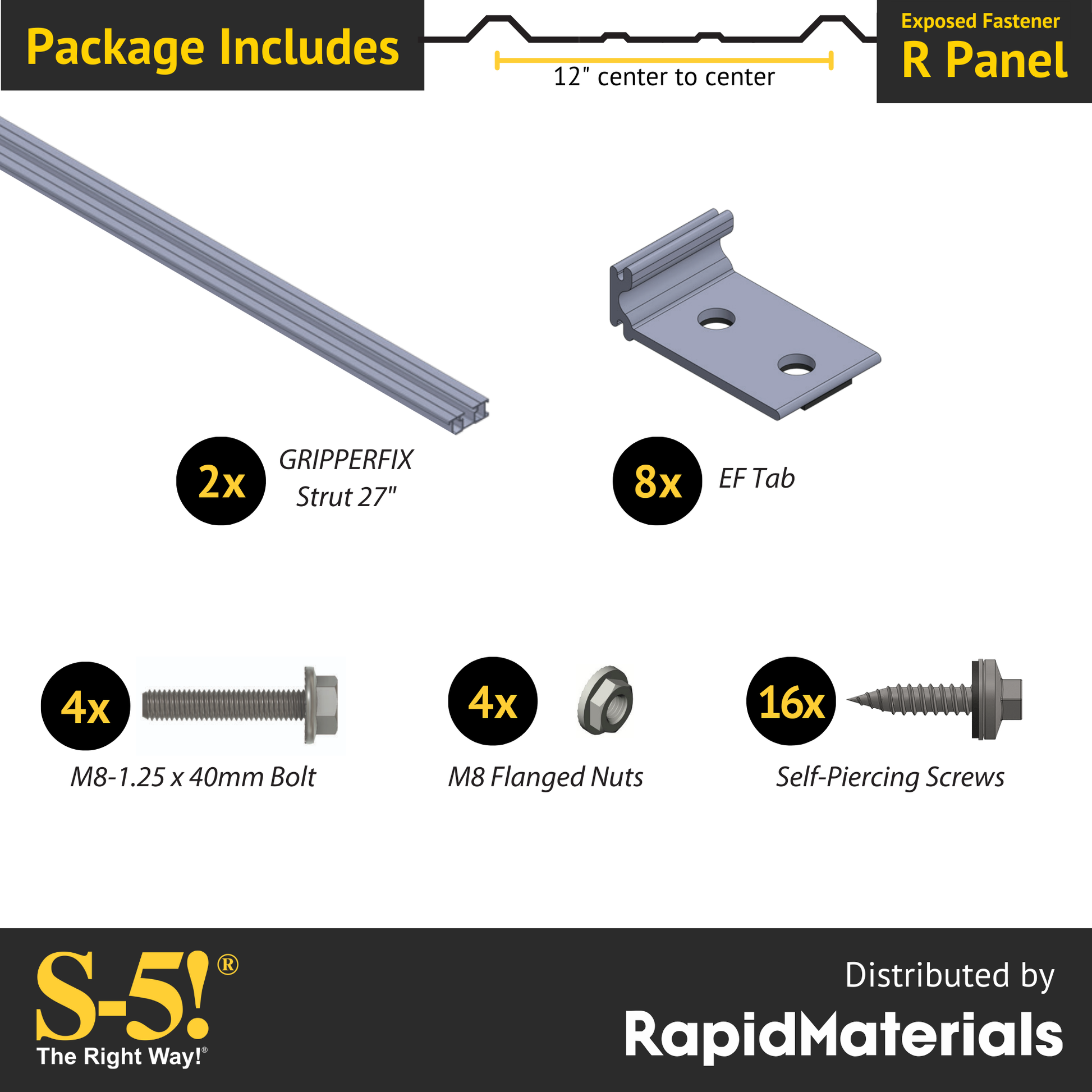 - Compatible Roof Profiles: R-Panel Roof (Trapezoidal) – 12" Rib Spacing