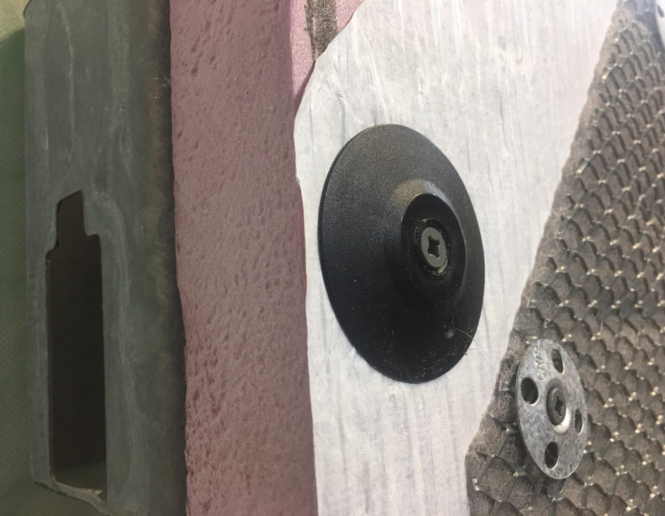 TRUFAST®’s Thermal-Grip® Flat Washer aids in the mechanical attachment of commercial building wrap and rigid foam insulation. The flexible 2" diameter washer seals penetrations.
