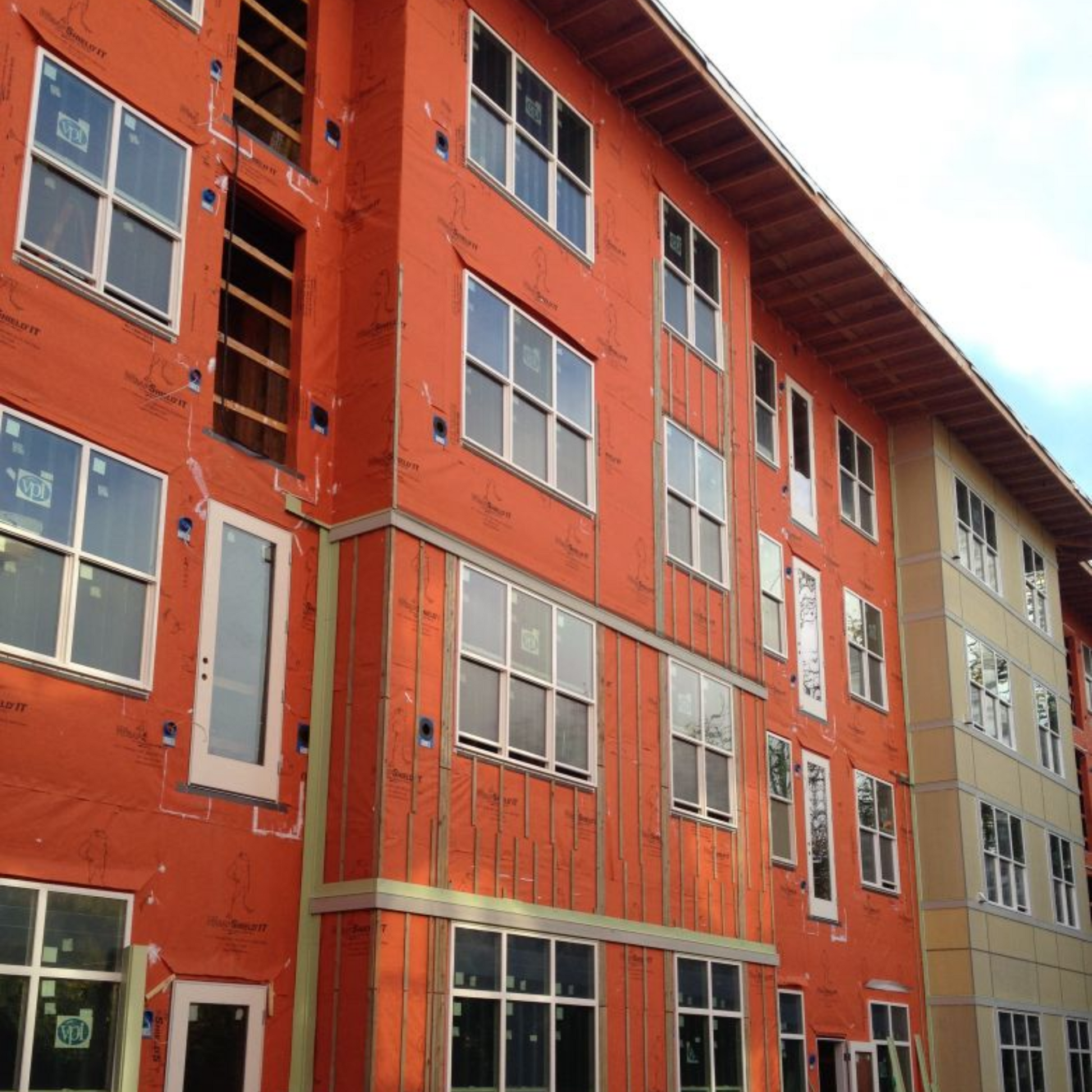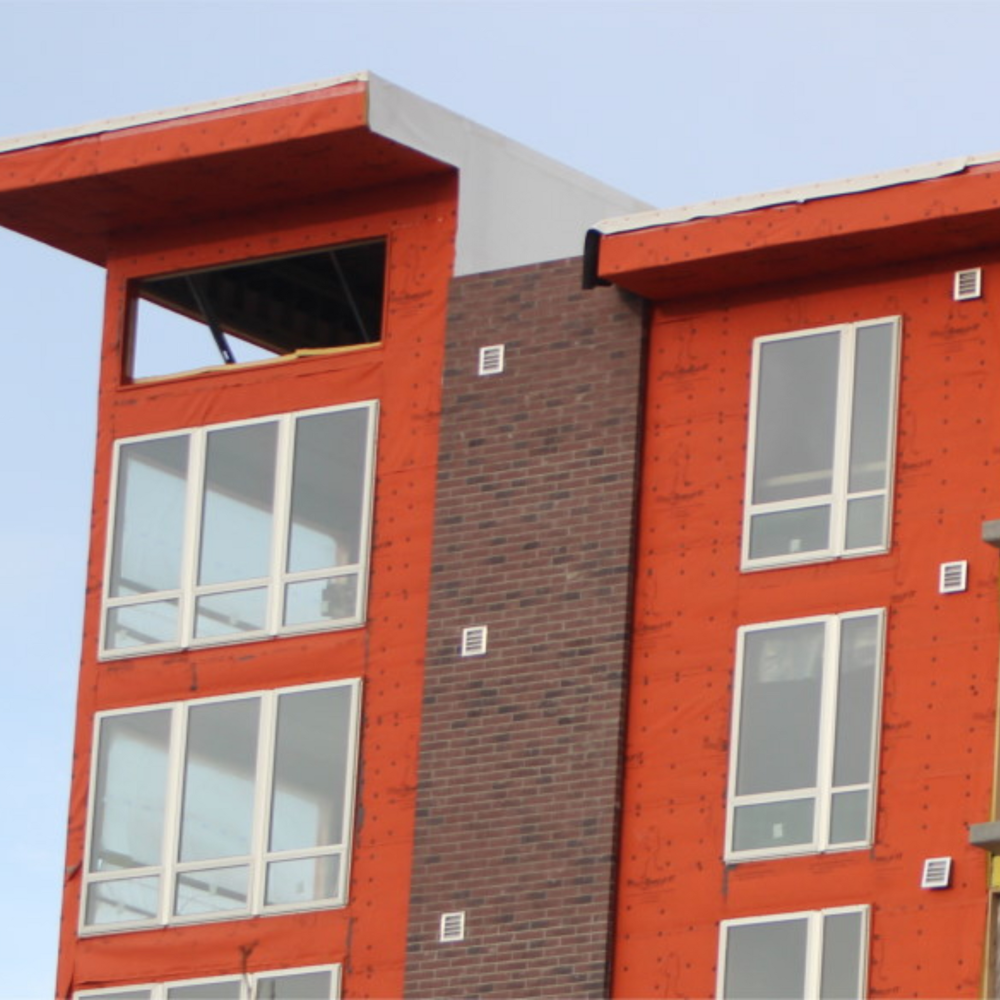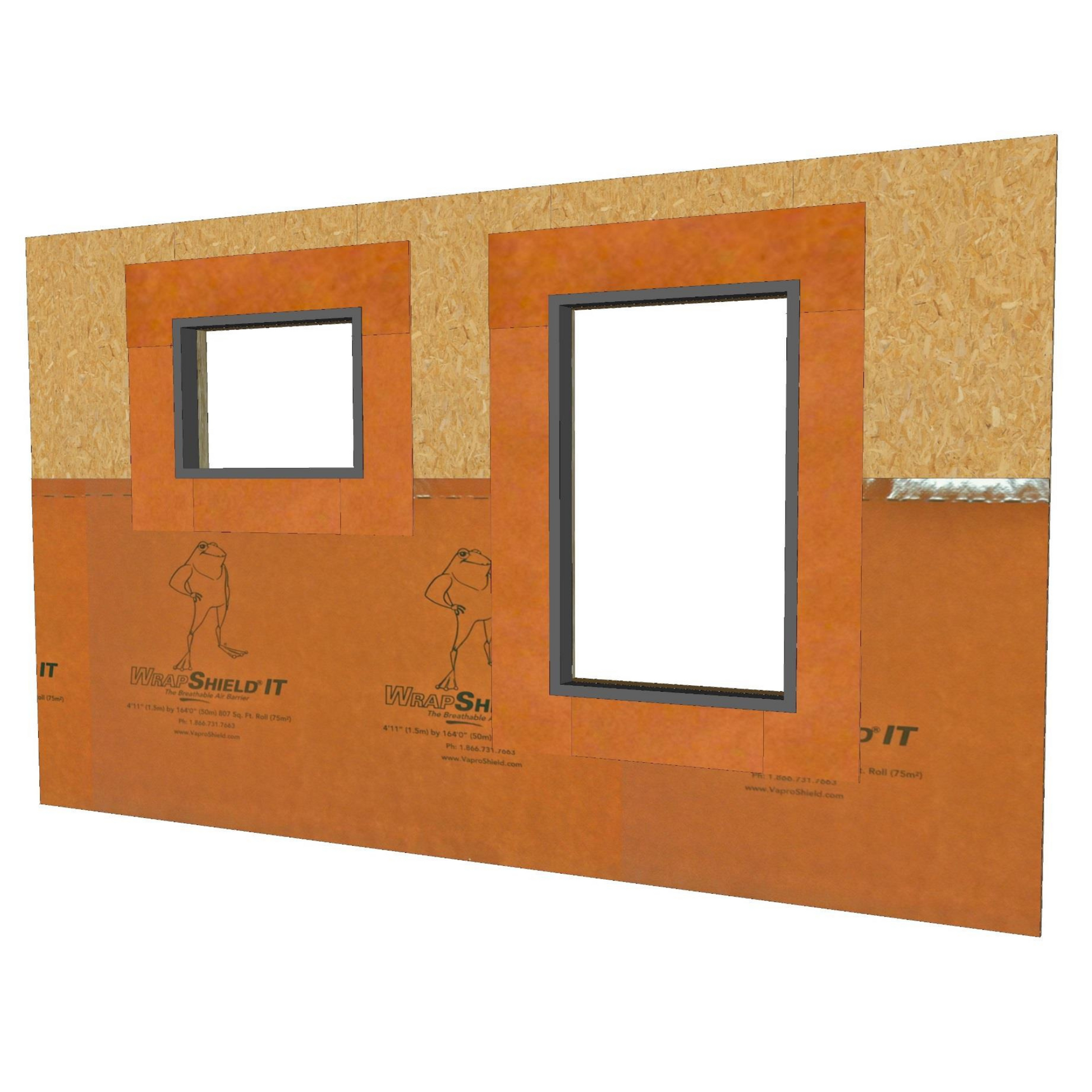 WrapShield IT Integrated Tape is an orange, vapor-permeable weather-resistive barrier with factory-applied seam tape for fast, reliable installation. The integrated tape is applied directly to the membrane during manufacturing, eliminating the need for separate horizontal flashing tape and reducing the risk of installation errors.